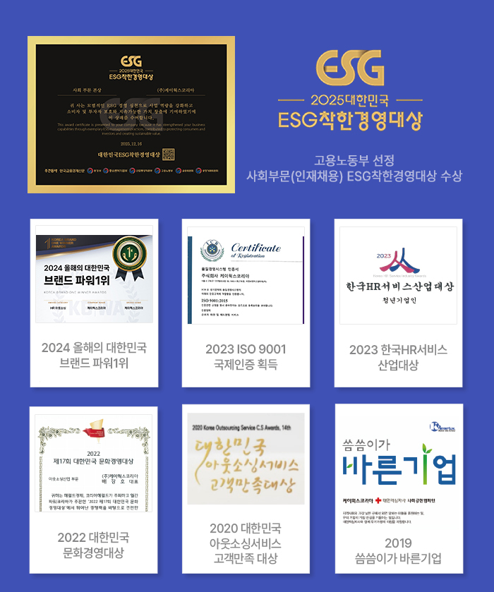 케이웍스코리아는 더욱 발전되고 성장하는 아웃소싱 부문의 정통적인 리딩기업으로 자리매김 하고자 합니다.